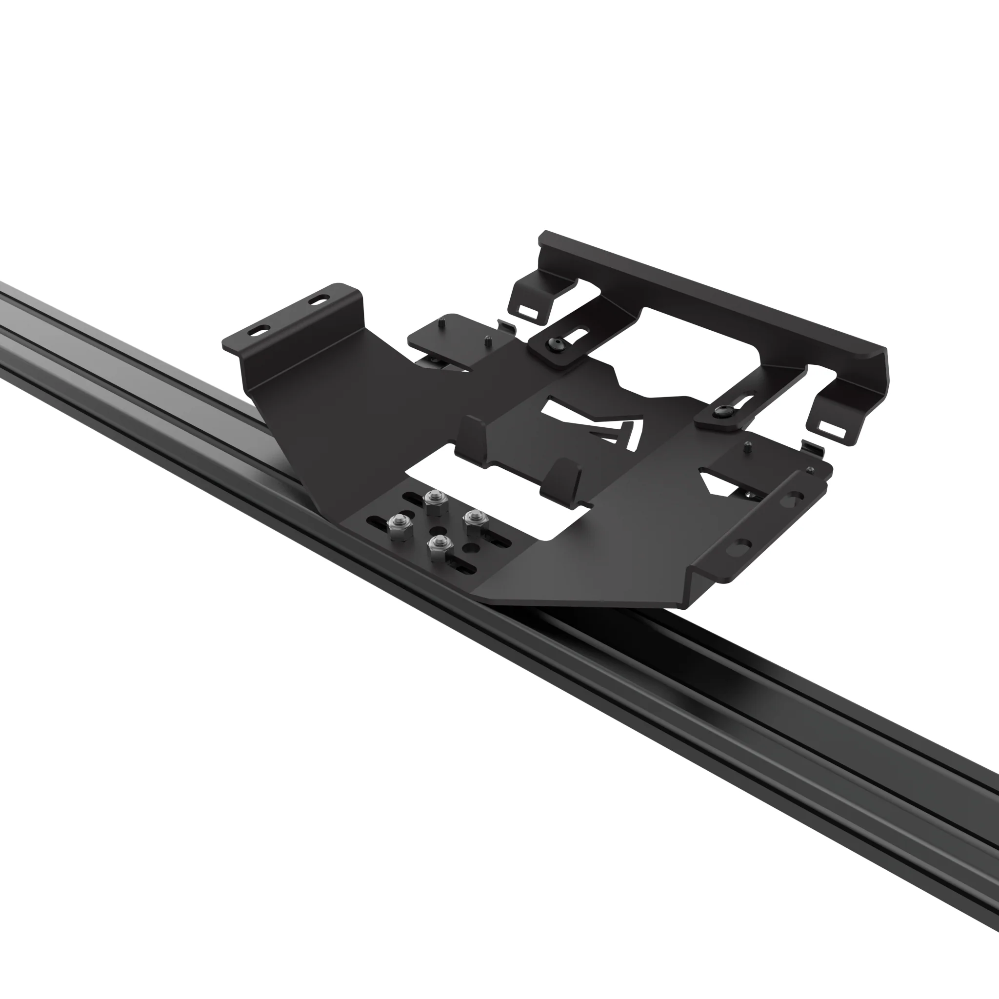 The mount integrates seamlessly with TrailRax Modular Roof Racks, fitting cleanly between crossmembers for a low-profile setup, on top of roof tops tents with track systems, or on our Mounting Decks.